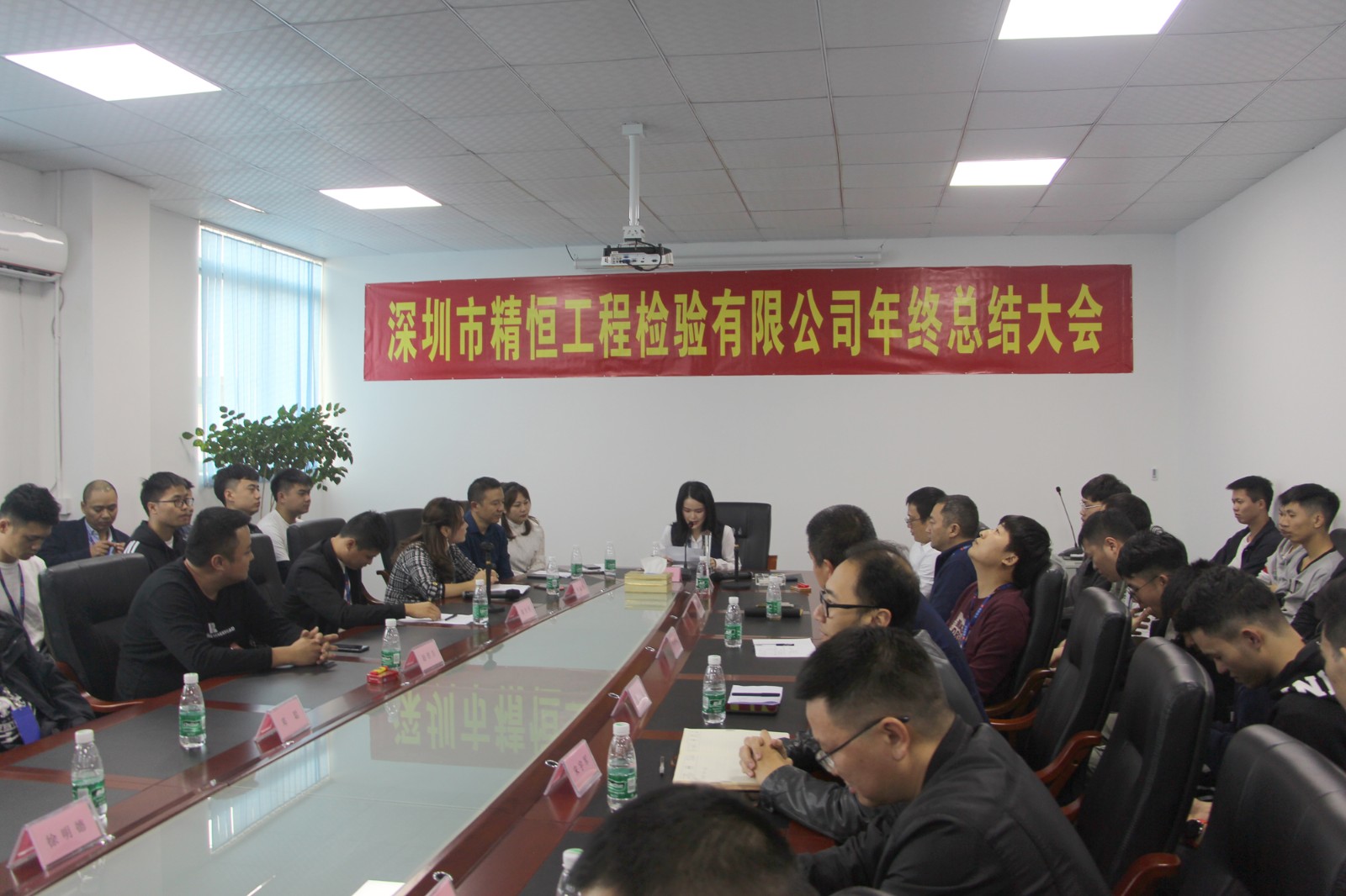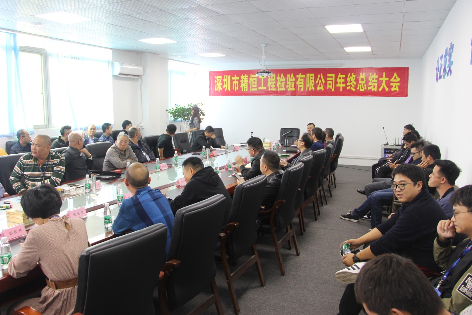 2019年12月30日下午14:00分,公司年终总结大会在深圳总公司四楼会议室举行。参加大会的有总公司、河源市精恒工程检测有限公司、深汕特别合作区精恒工程检验有限公司的全体员工。