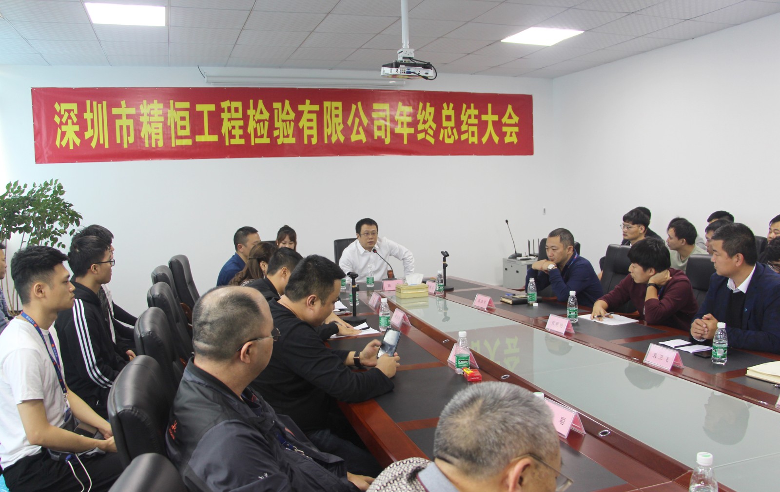 2019年12月30日下午14:00分,公司年终总结大会在深圳总公司四楼会议室举行。参加大会的有总公司、河源市精恒工程检测有限公司、深汕特别合作区精恒工程检验有限公司的全体员工。